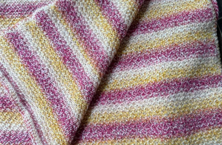 This sand stitch baby blanket knitting pattern is easy to stitch in sand stitch, a four row repeat of knits and purls that looks good on both sides. Materials I used one ball of Bernat Sport Ombre Twist, which, according to the ball band, is 1,011 yards (924 meters) and a light/DK/yarn weight 3. This […]