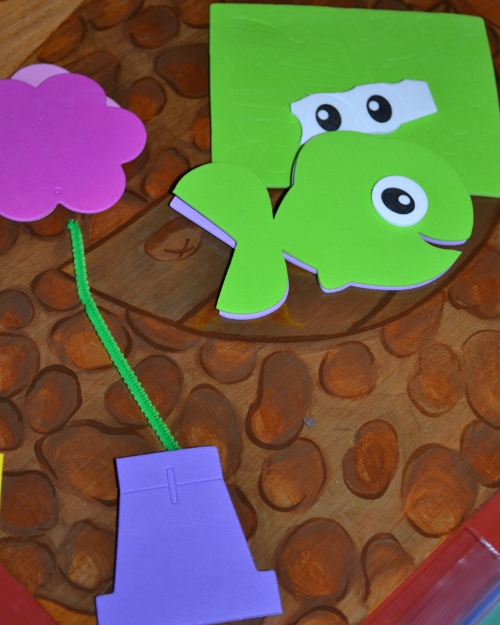 It’s a collection of foam stickers that can be used to make either a fish or a flower (that one includes a pipe cleaner for a stem).