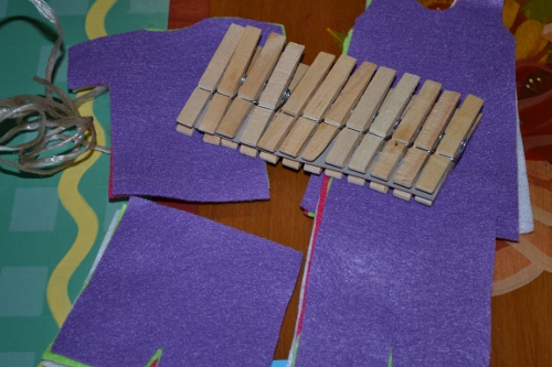 I’ve been thinking of doing a felt board for the Bit so I will also make felt people of the proper size to wear the clothes, which will allow us to use at least that part until she’s more comfortable with clothespins.