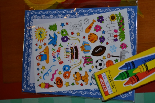 I’m not sure what exactly makes this an “about me” book, but that’s what the mom who made it called it. It’s a collection of a little book, stickers and crayons, which is always a good idea when you have kids around.