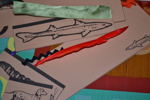 This is another really cool one that I wish I’d gotten, but it would be super-easy to re-create with the printables and instructions from Walking by the Way. There are pictures of different sizes and ribbon, feathers and other objects of different sizes and the idea is to match up the size of the thing on the picture (a fish, a dog, etc.) with the right sized objects. A great skill-builder, this one.