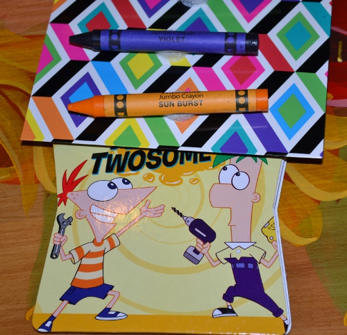 Simple, classic for a reason. A little notebook and some crayons.