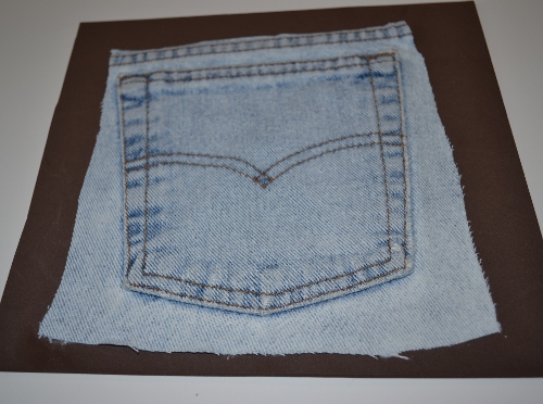 - Use fabric scissors to cut out the pocket, leaving a little of the denim of the jeans as an edging. Trim your foam board to a good size to contain the pocket and glue down with white glue.