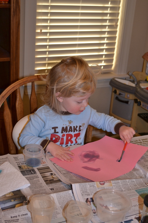 This was the first time I ever let her paint without a smock. I think she managed to stay clean. And she was in pajamas anyway.