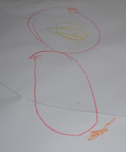 I think this is the first time she’s drawn something that looked like a person and said it was a person.