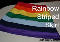 I decided on 2-inch stripes because, with seven of them (red, orange, yellow, green, blue, indigo and violet) that would make the skirt about 14 inches long, which is fine for a 3-year-old. You can make your stripes wider or narrower depending on how long you want the skirt to be.