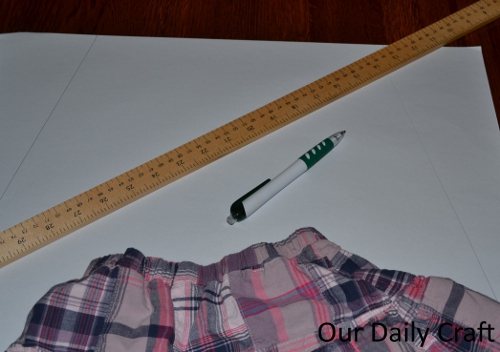 I got a piece of easel paper and marked that width in the center, then angled my yard stick down to the corner to make a sort of A-line shape.