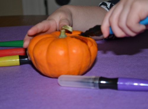 Last year I let the Bit paint a pumpkin, so that’s what she wanted to do again.