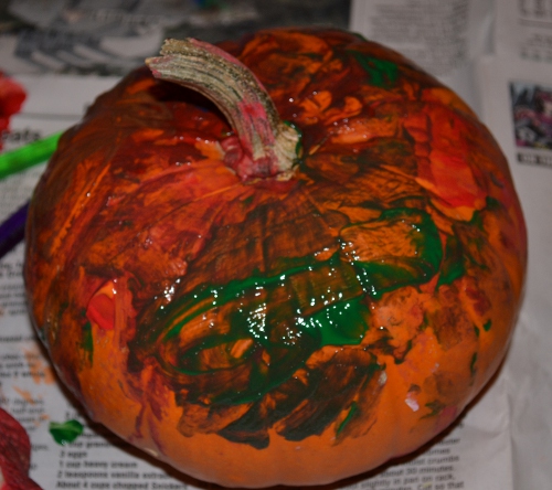 Within about 10 minutes of starting, she declared the pumpkin finished (for now anyway).