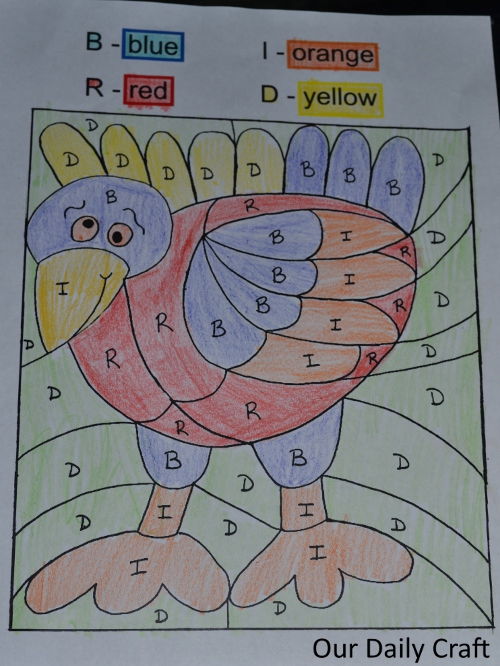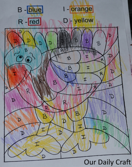I also printed off some turkey color by letter sheetsfrom the aptly named Coloring & Activity Pages blog. We did these Thanksgiving morning.