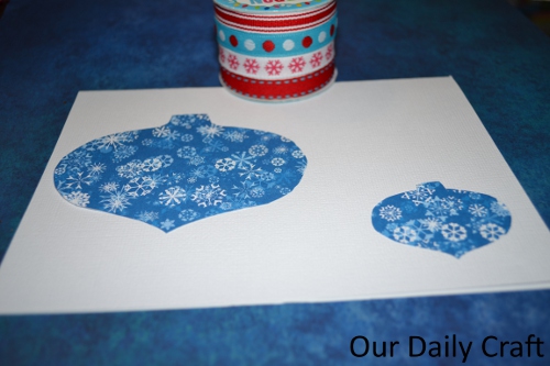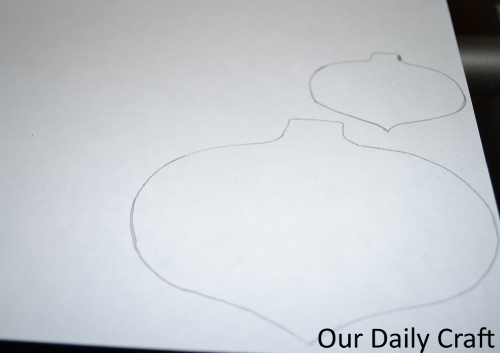 - Decide what size you want your ornaments to be. I made one of mine 2 inches across and one 4 inches across to put horizontally on a 3×5 card. Print out the shapes.