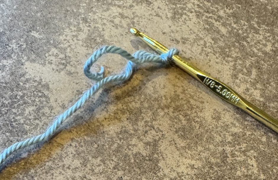 To begin, make a slip knot and put it on the crochet hook.