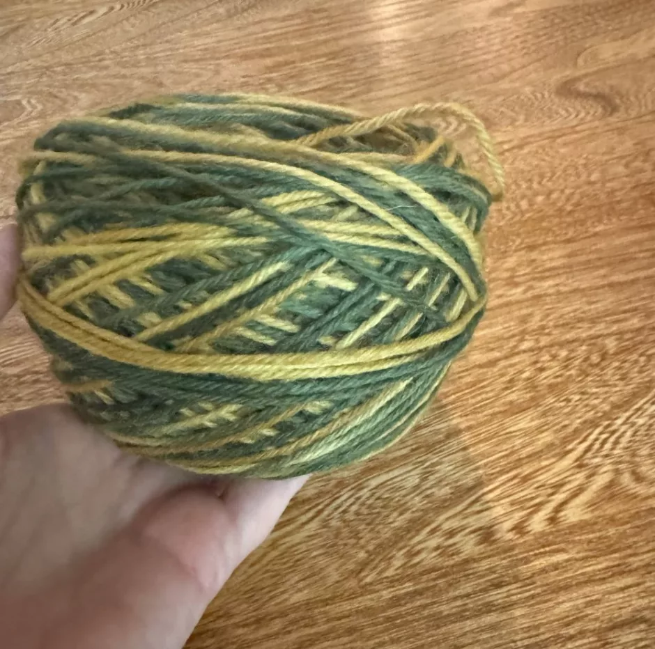 When you’re done you’ll have a nice ball of yarn you can crochet or knit from the outside in.