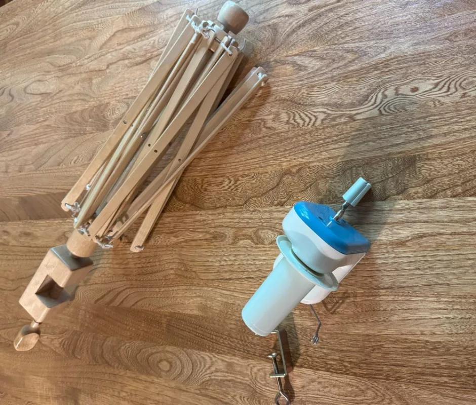 The winder and hank shown above both came from Knit Picks many years ago. They don’t carry those exact ones any more. This one from Stanwood is similar to my winder (which is Japanese); the swift may actually be a Stanwood because this looks just like mine.