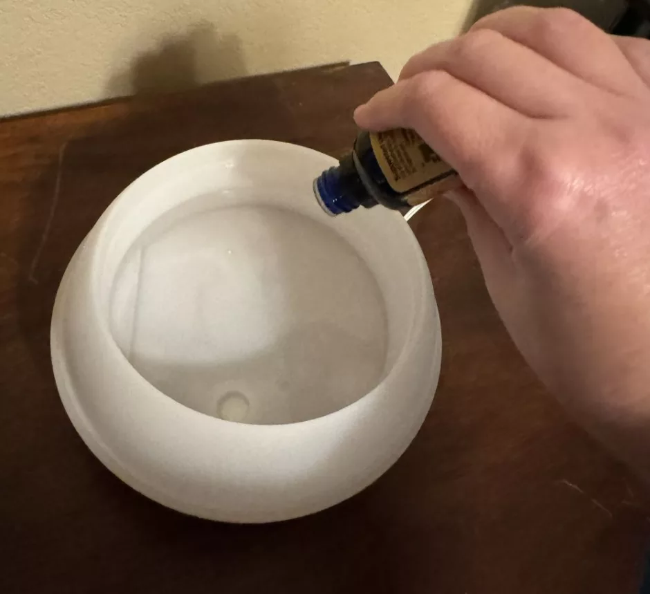 I sense your next question is how much is a drop. The general consensus is that there are about 20 drops in a ml, though of course that varies depending on the liquid and the size of your dropper. But assuming 1 drop is 0.05 ml, you’d need 2 or 3 drops per ml of water, or about 8 to 12 drops total for a diffuser of my size.