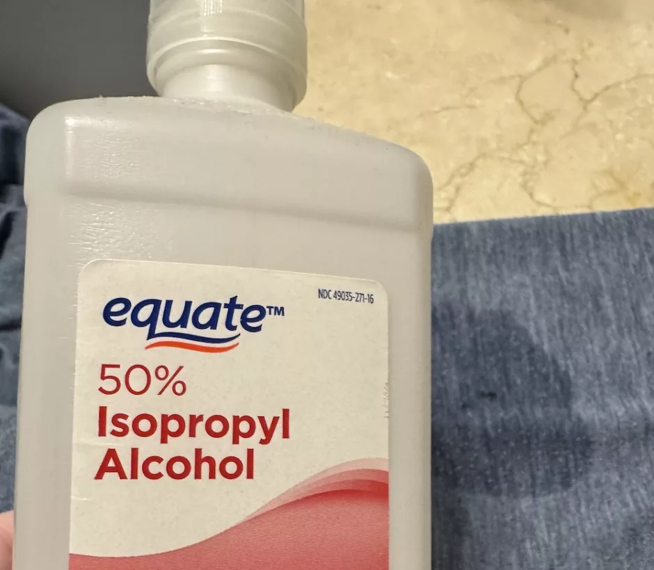 This rubbing alcohol is 50 percent concentration, but you can also find 70 percent or as high as 91 percent if you find the lower concentration isn’t working. You may also find lower concentrations but I think 50 percent is good for general use.