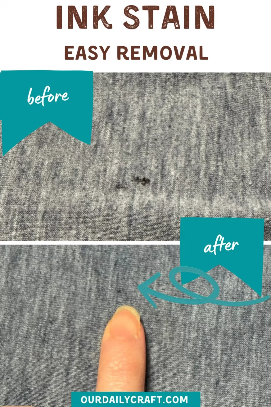 The main thing you need when you’re learning how to remove ink stain from clothing is alcohol. I use rubbing alcohol (we happen to have some we keep in a spray bottle and that’s perfect for this job).