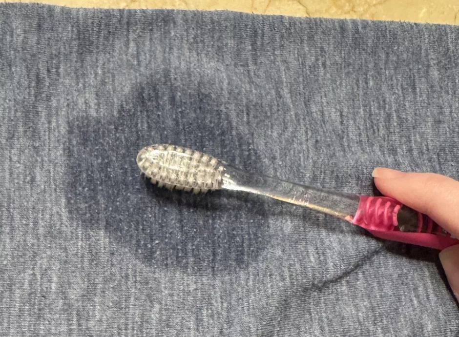 Next I did it again but used my handy laundry toothbrush (see also: how to get blood out of fabric) to help it get down into the fibers.