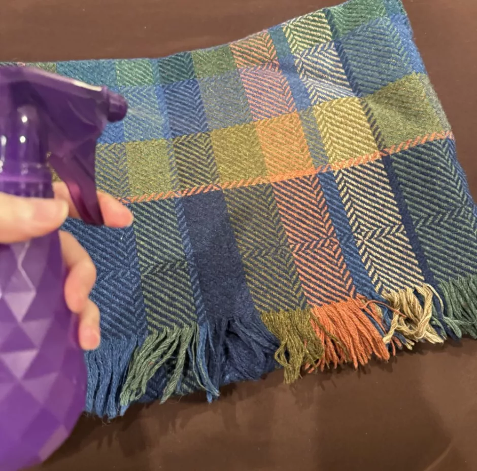 When using your linen spray, make sure your spray bottle is on spritz and gently spray the fabric. You don’t want it soaked, so a couple sprays should be enough. If you’re spraying things to put into storage, make sure they are dry before you put them away.