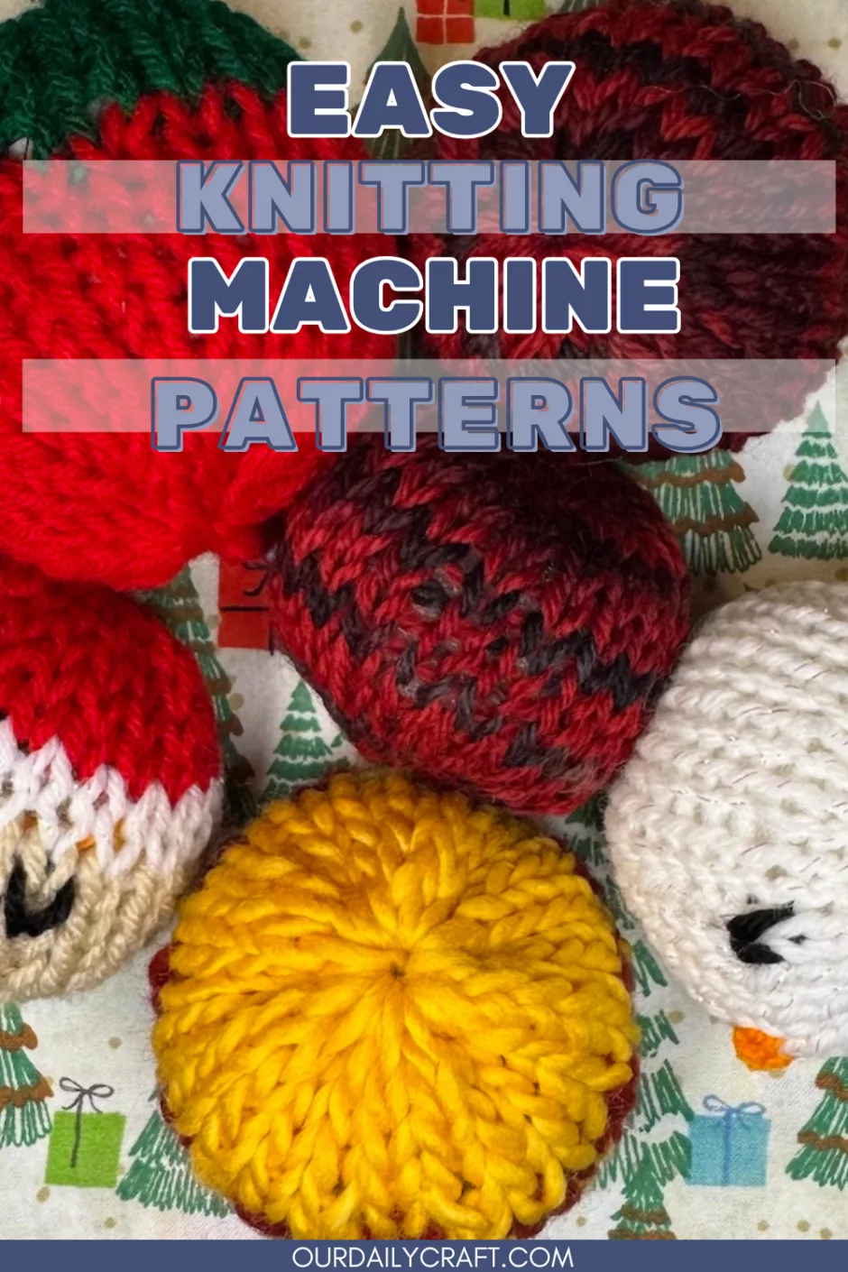 You can also make Christmas balls on a small circular knitting machine, which is a lot of fun because it’s a small-scale way to play with patterns like stripes and easy colorwork. I shared five different ideas in this post but I’m sure you’ll come up with more.