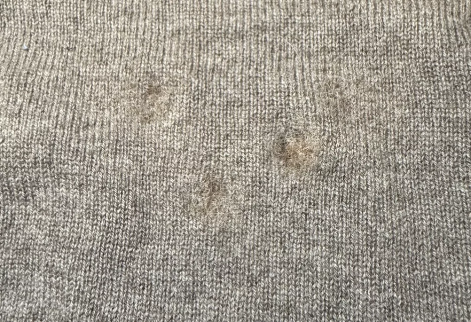 When you flip the sweater so the right/front side is up, you’ll see all the fibers are sticking out on this side.