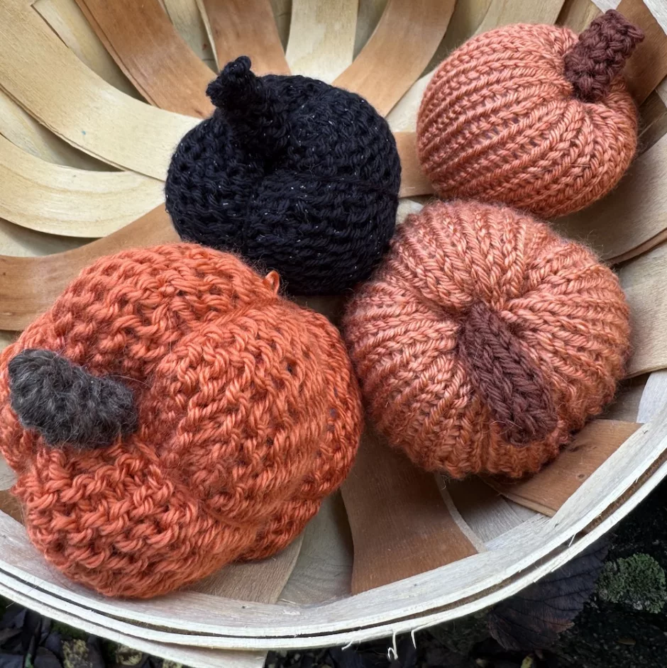 Want to make some yarn pumpkins this fall? I’ve got patterns for knitting, crocheting, and making pumpkins on the circular knitting machine.