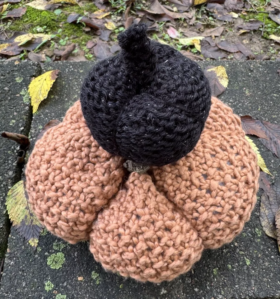 I don’t feel like there are as many stitch options for crochet pumpkins as there are for knit, but any crochet stitch that has a lot of single crochets like moss stitch or lemon peel stitch would be fun. You could also play with working in the front or back loop only to add texture.