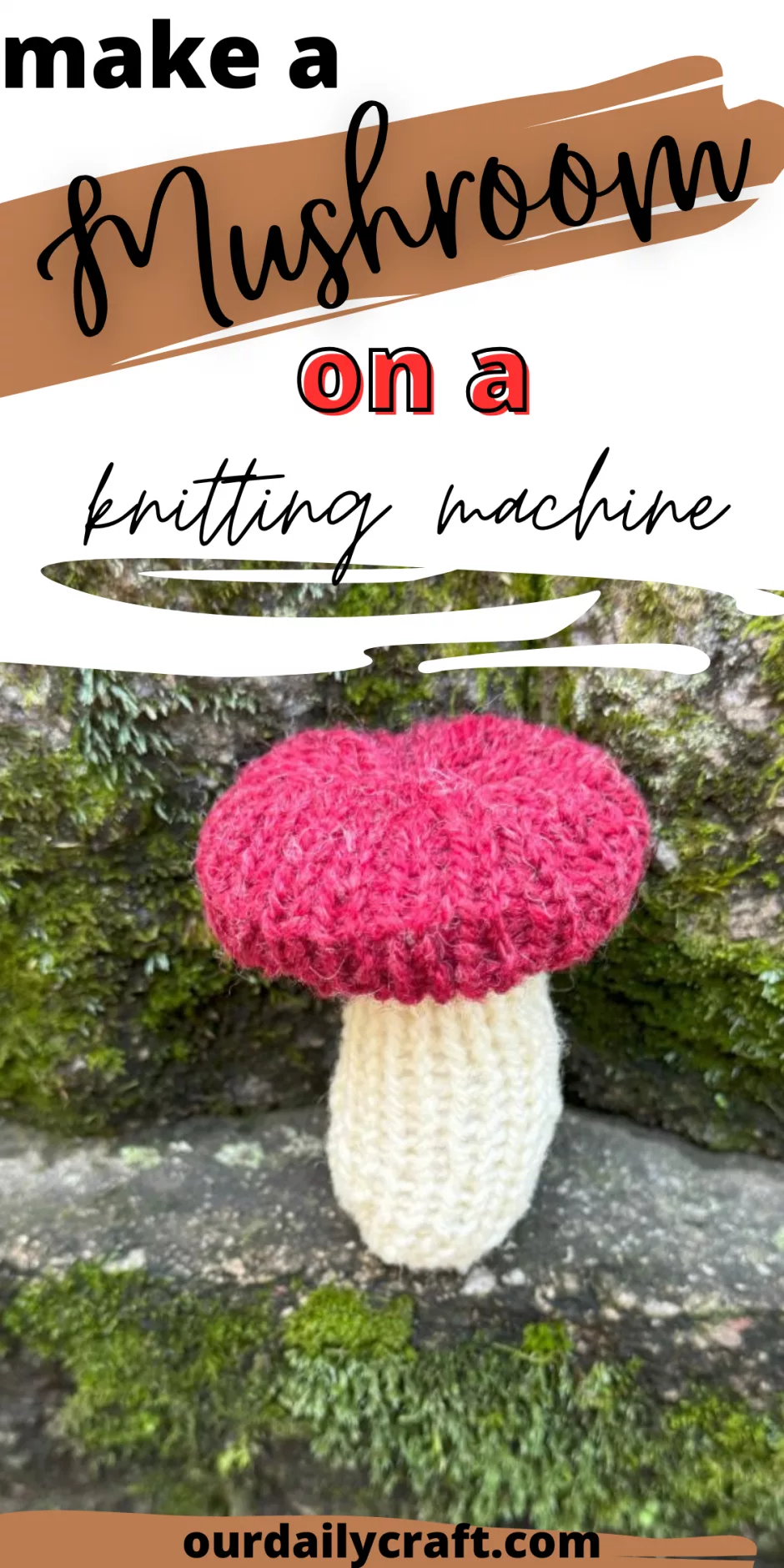 This knitting machine mushroom pattern is fun because you get to knit a tube and a flat panel, so it’s a great project for learning how to knit a panel if you’ve never done that before.
