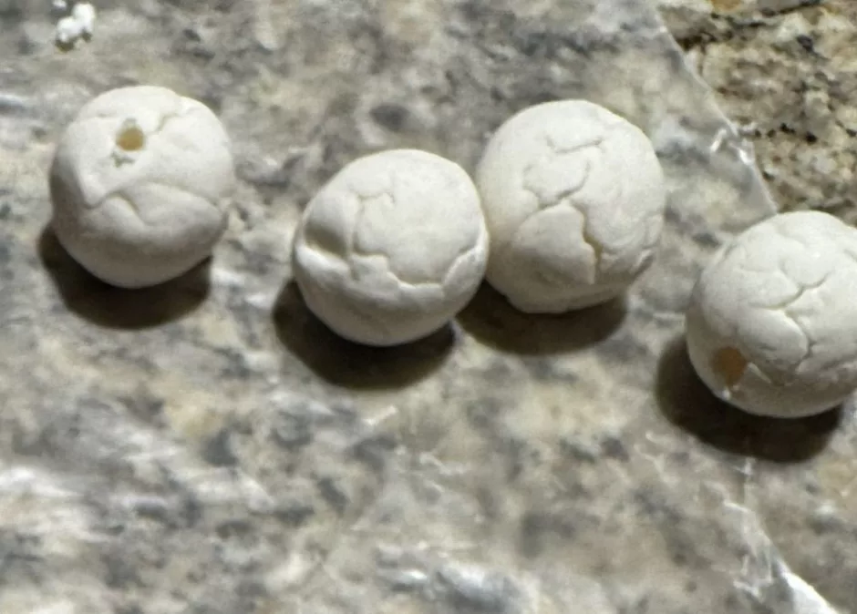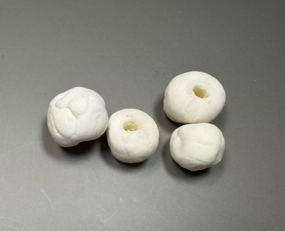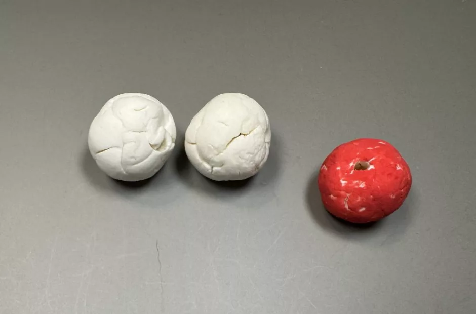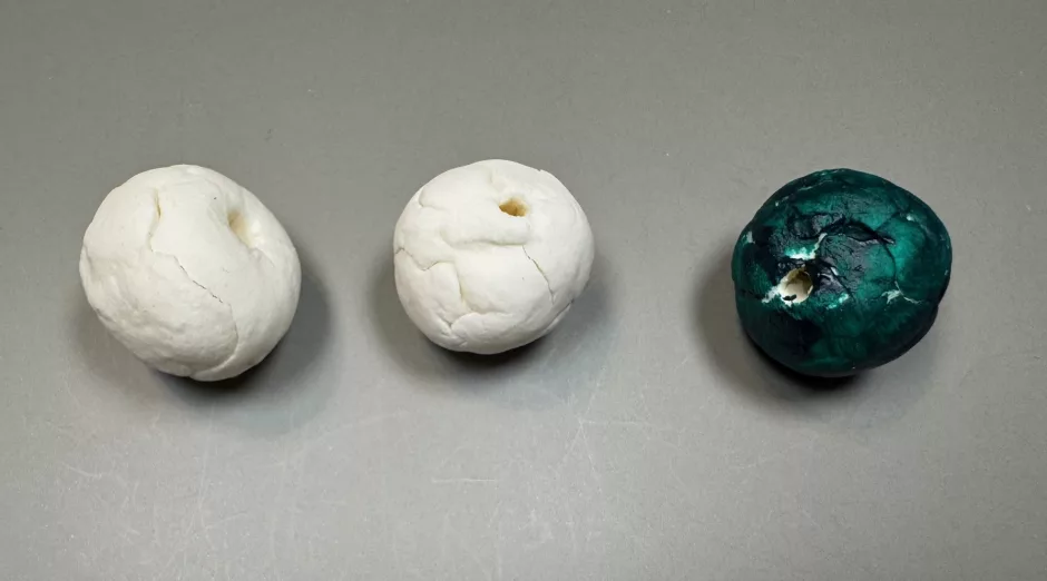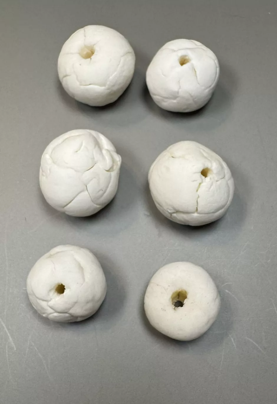 First up: drying normally on the counter. These dried in a day and they cracked dramatically. Here I painted one with regular acrylic paint to show what a “finished” bead might look like.