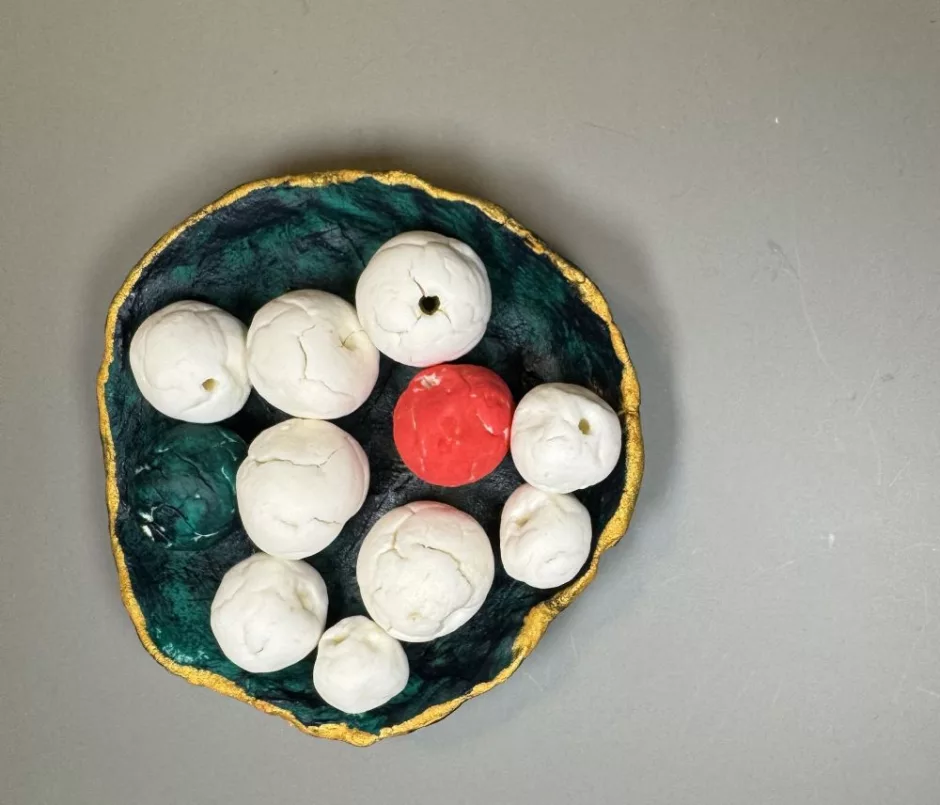 First up: drying normally on the counter. These dried in a day and they cracked dramatically. Here I painted one with regular acrylic paint to show what a “finished” bead might look like.