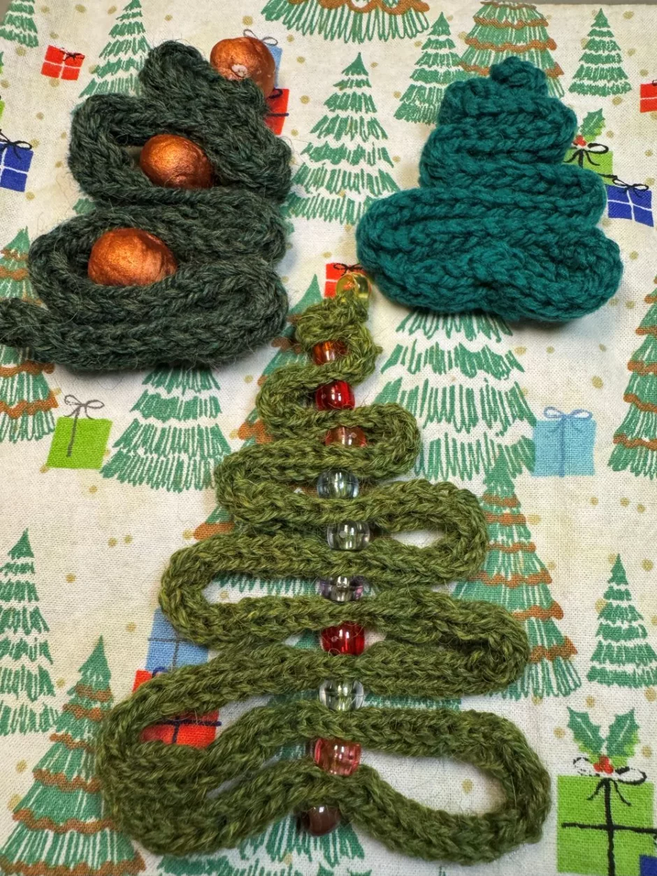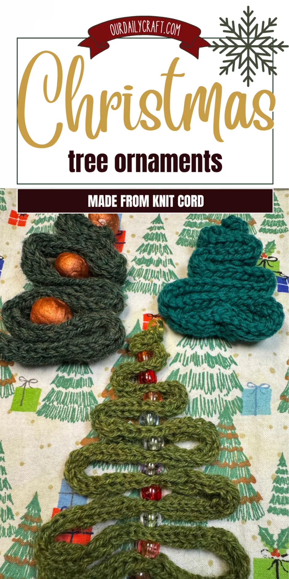 I hope you’re try these super cute knit I-cord Christmas tree ornaments. You can make them in no time and embellish them in lots of different ways.