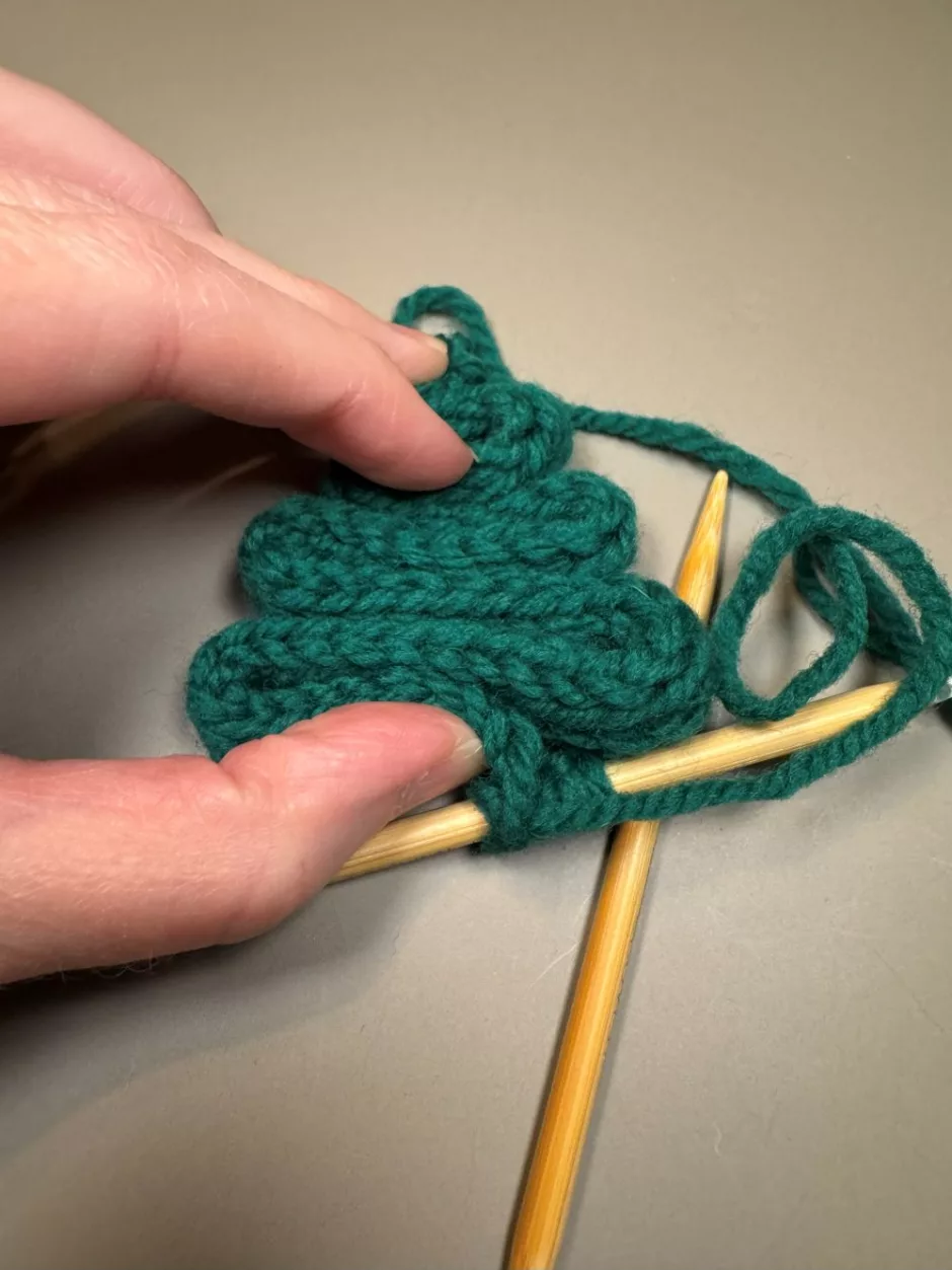 To make your knit I-cord Christmas trees, you’ll first need some I-cord. I cast on 5 stitches for the ones I made by hand; the I-cord maker makes a cord that’s 4 stitches.