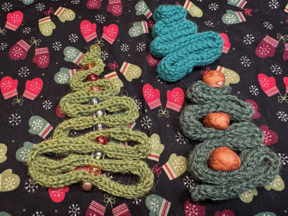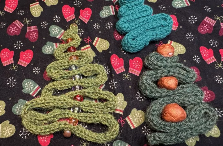 I hope you’re try these super cute knit I-cord Christmas tree ornaments. You can make them in no time and embellish them in lots of different ways.