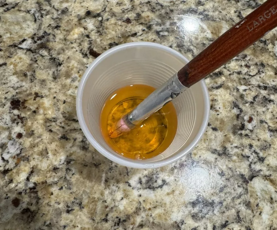 It’s not difficult to clean paint brushes this way, but it does take some time and one particular ingredient.