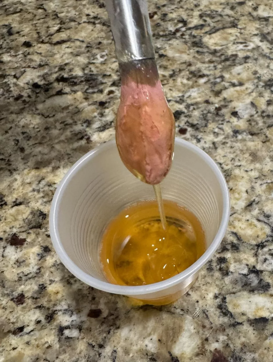 After your brush has sat in the liquid for a day or so, you’ll notice the Murphy’s Oil Soap has gotten really thick. I don’t know why that happens either but if you see that happening, know that it is part of the process.