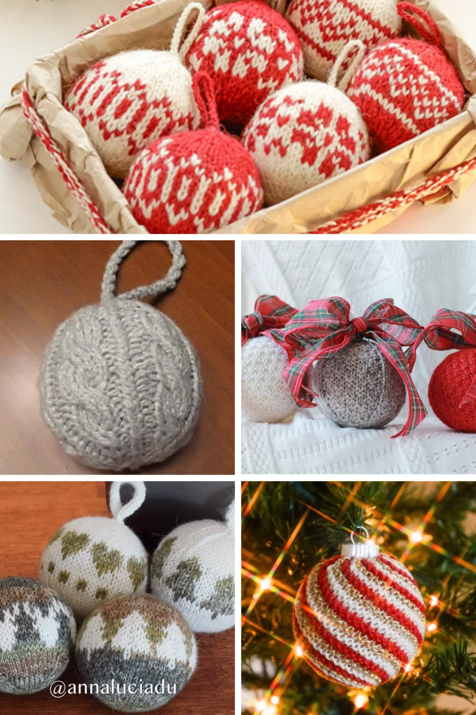If you ask me, the classic knit Christmas ornaments are balls. I have a set I made on a circular knitting machine but you can do the exact same thing knitting by hand.
