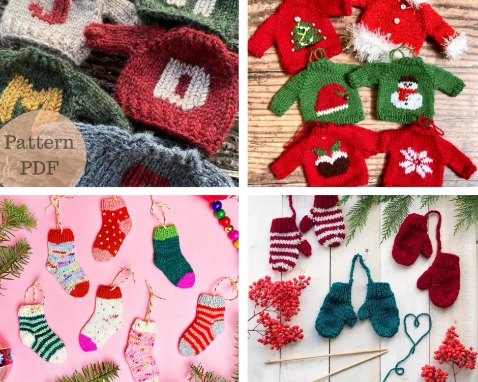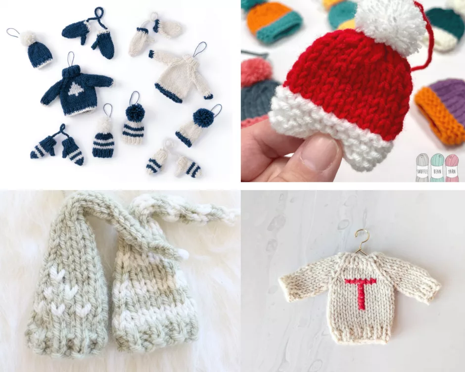 Little sweaters, hats, stockings and more are super cute to knit for the tree. Personalize them with family initials or the year you made them and they become an even more treasured keepsake.