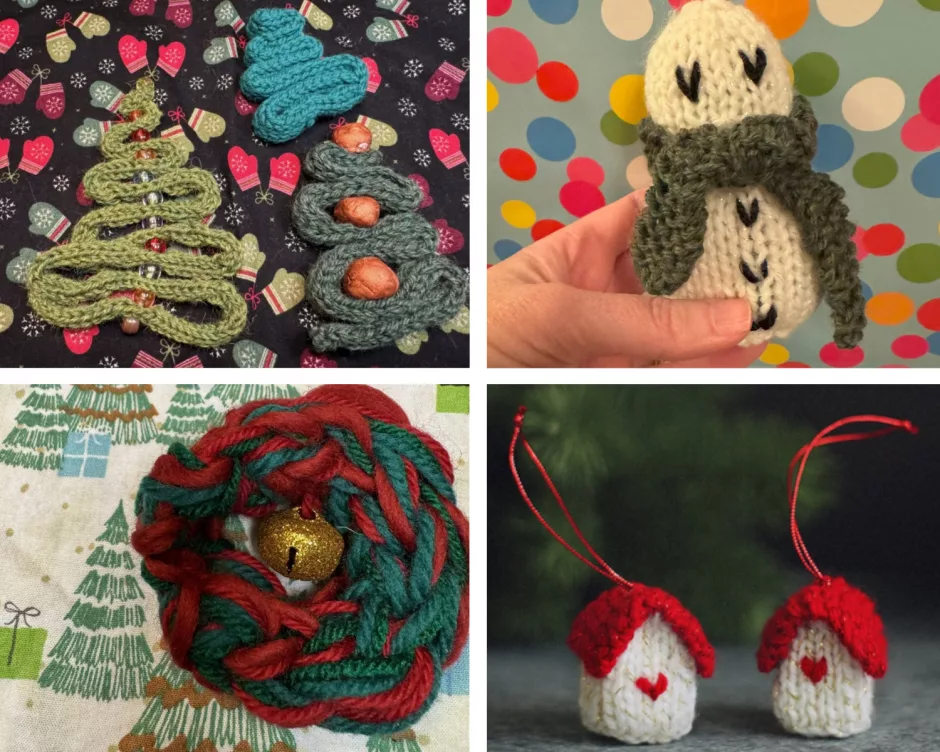 And if you want to skip the needles all together, make some finger knit wreath ornaments. These take just minutes to make and are fun for kids and adults alike.