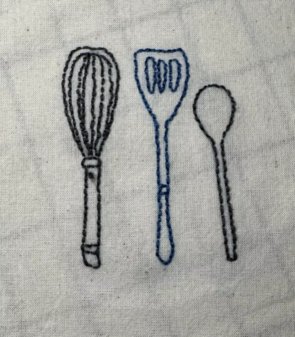 After stitching the whisk and the spoon in the same color, I opted for a different color for the spatula because why not?