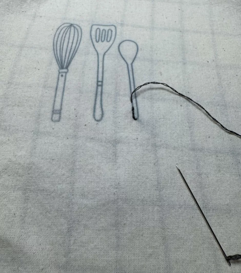 The little French knot in the handle of the whisk was made by wrapping the thread twice around the needle.