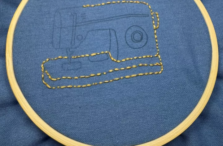 Using iron on designs saves a lot of time drawing a design by hand, and it’s great for woven fabric that doesn’t need to be stabilized while you stitch.