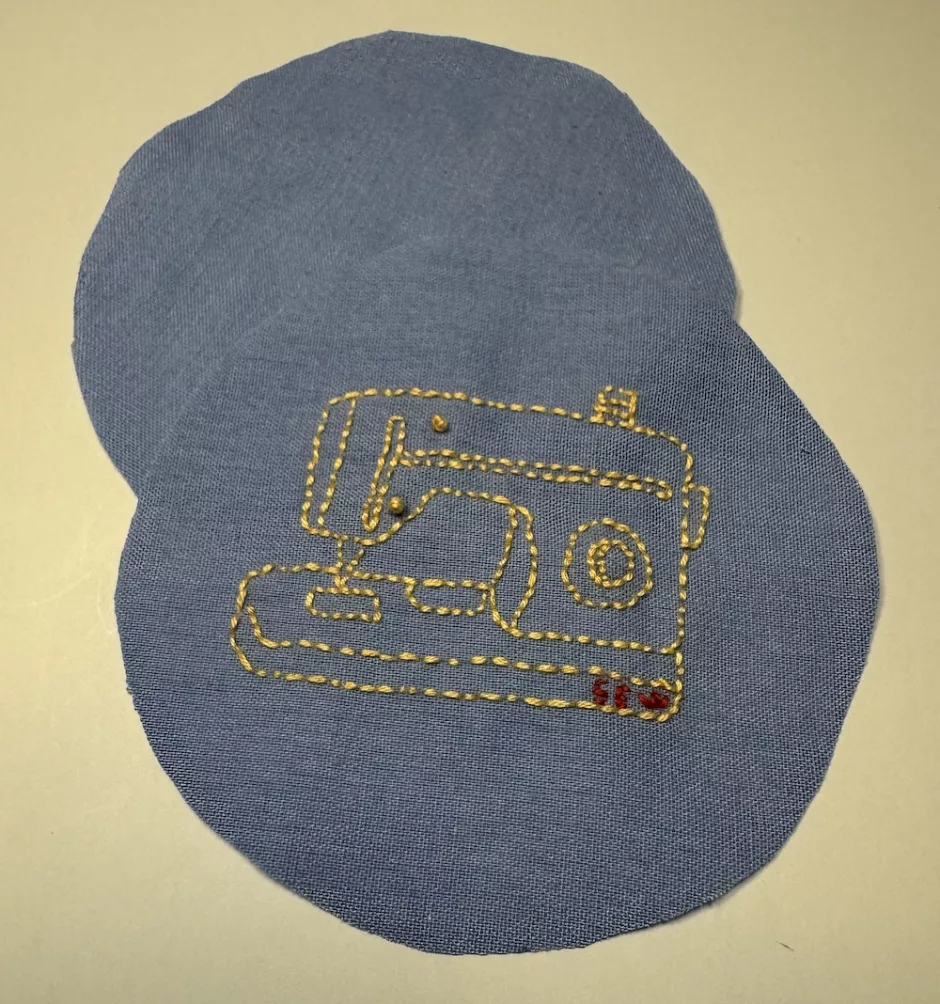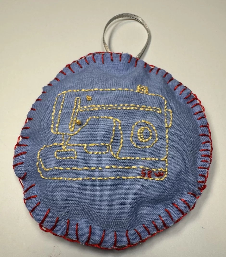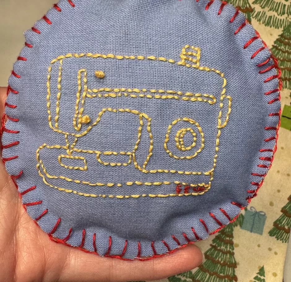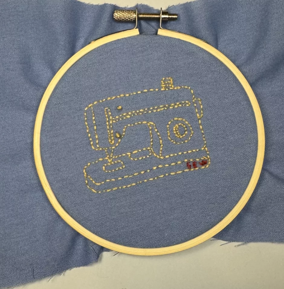 Because my initials are SEW and I was stitching a sewing machine, I couldn’t resist adding my initials. You could also add the year or any other words or lettering you like.