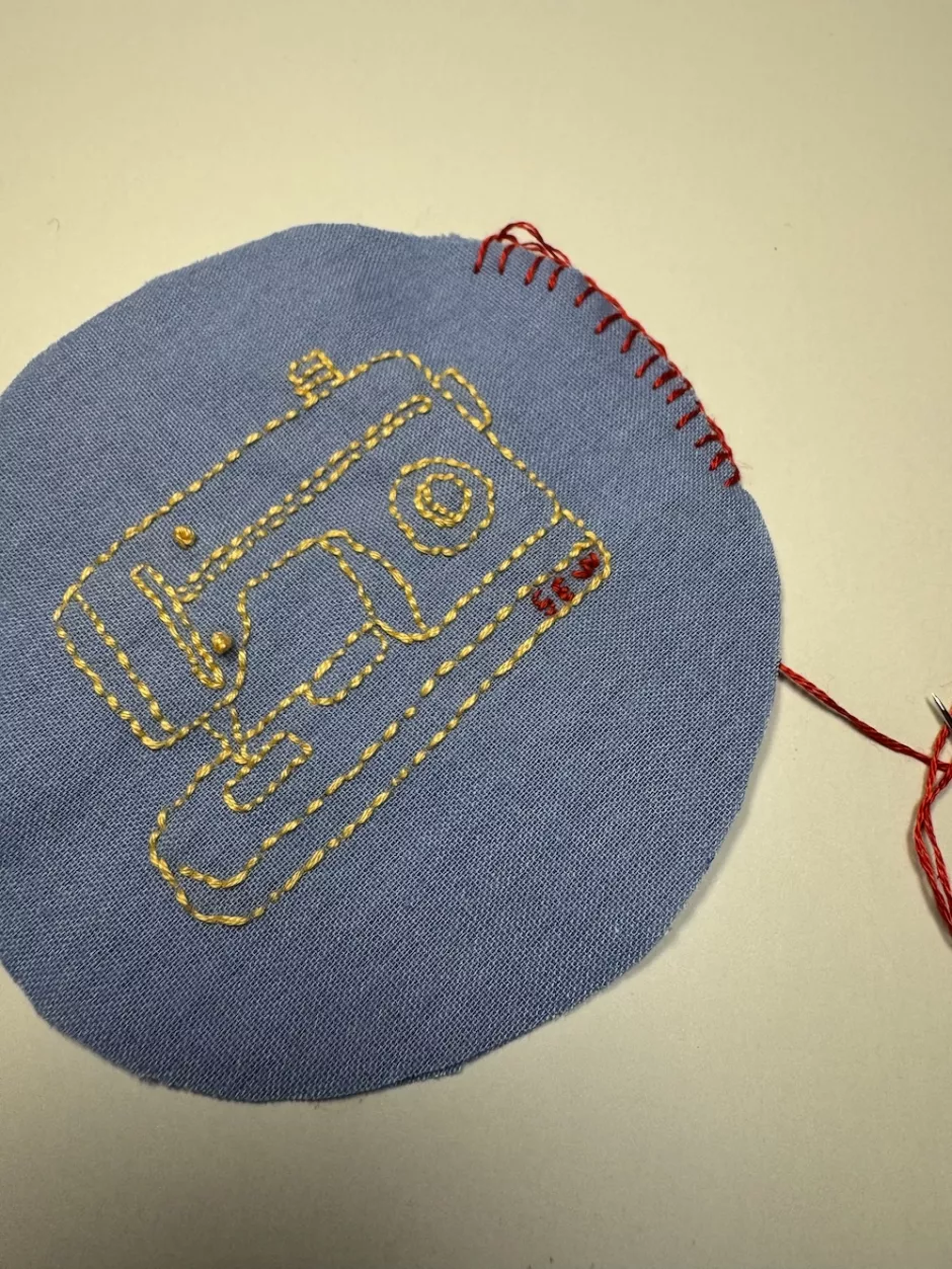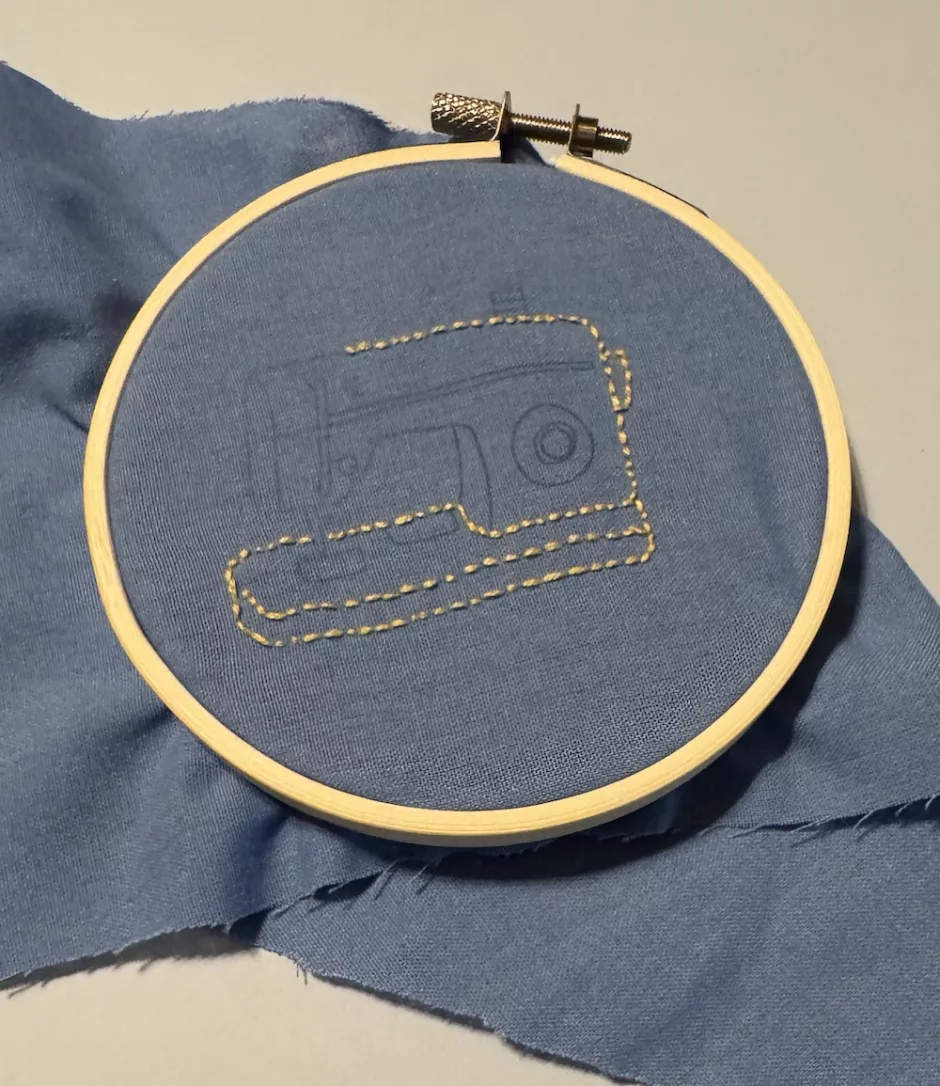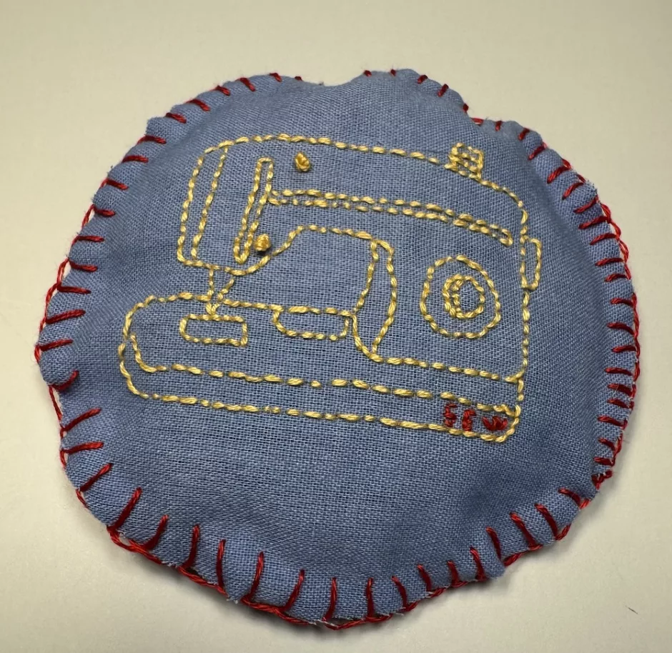Because my initials are SEW and I was stitching a sewing machine, I couldn’t resist adding my initials. You could also add the year or any other words or lettering you like.