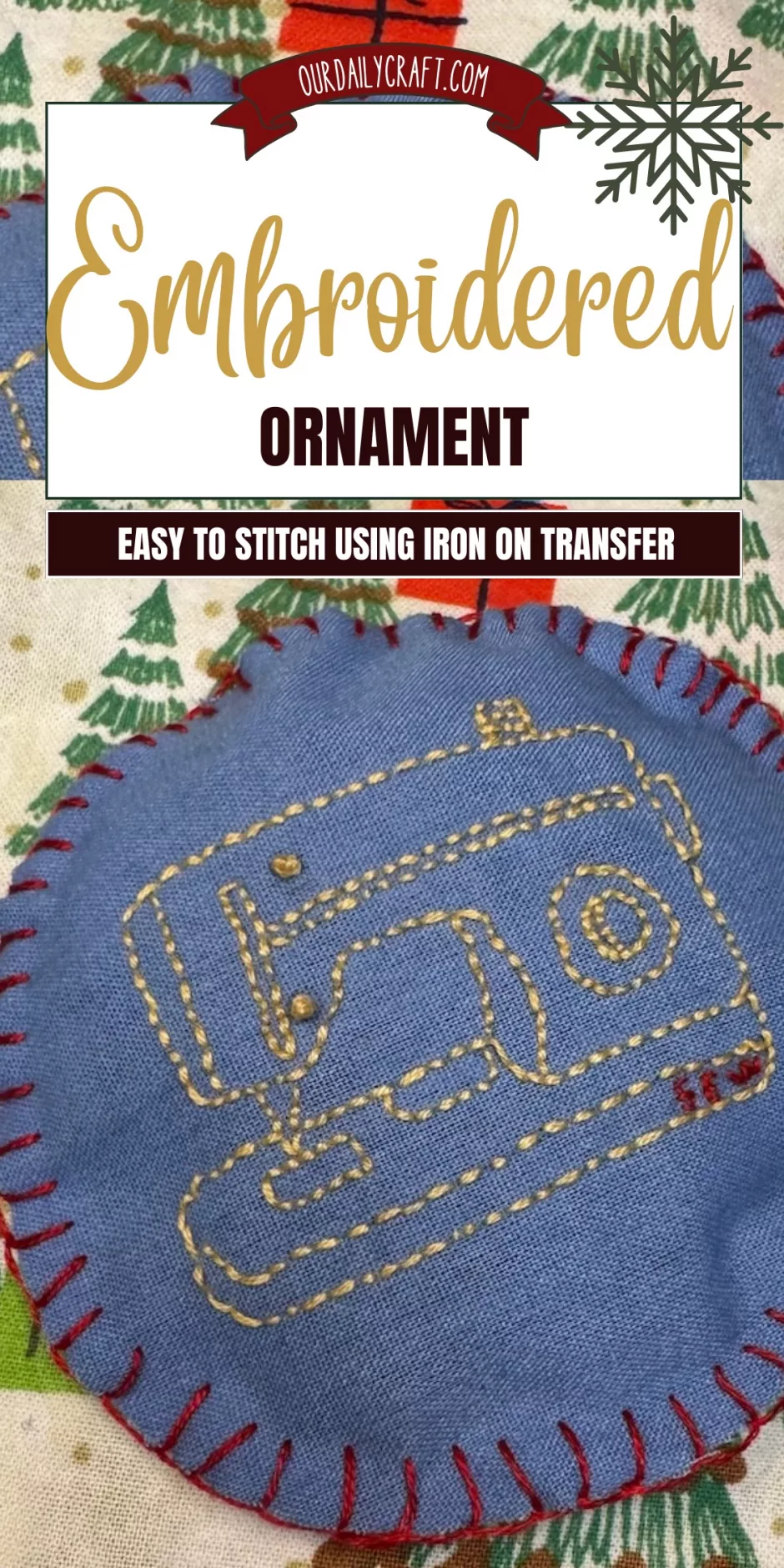 This embroidered Christmas ornament is quick and easy to make with the help of an iron on embroidery transfer. You can find all sorts of images to use in a project like this, or you can draw your own.
