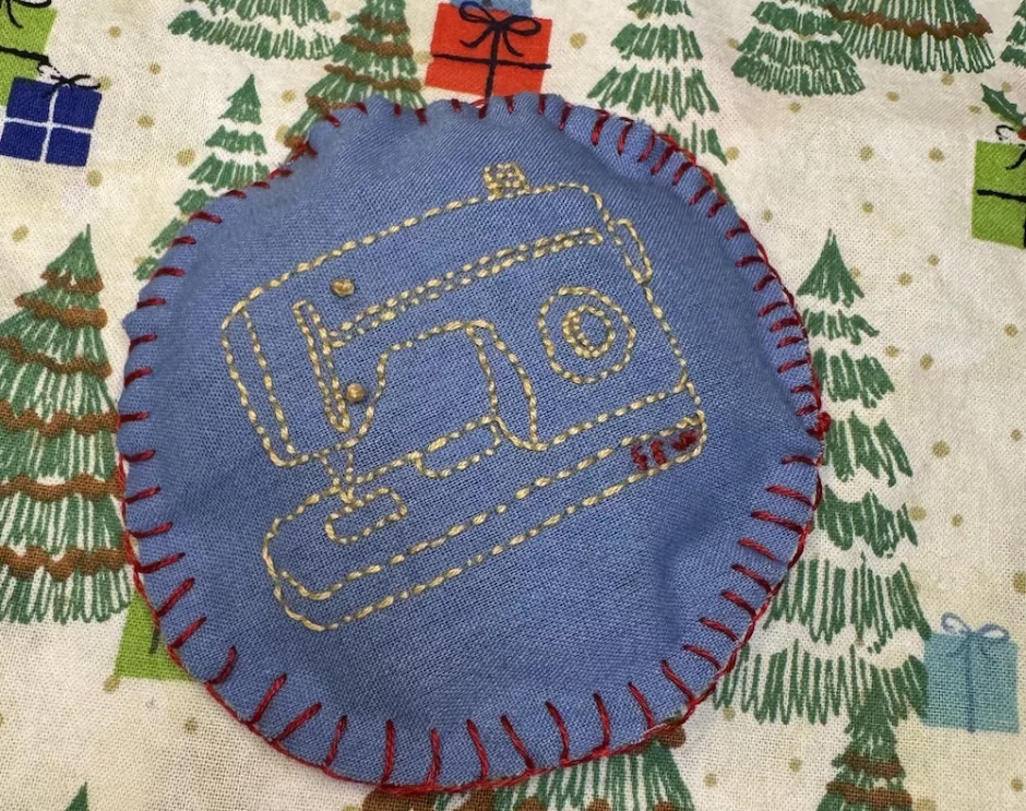 This embroidered Christmas ornament is quick and easy to make with the help of an iron on embroidery transfer. You can find all sorts of images to use in a project like this, or you can draw your own.