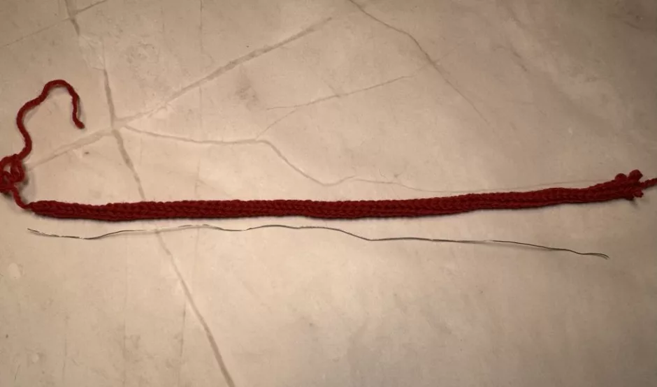 Side note: if you worked your cord on a machine and you already cut your wire, you may need to unravel a few rows first if you went too far. That’s totally fine but the wire and the yarn don’t have to be an exact match in length, either.
