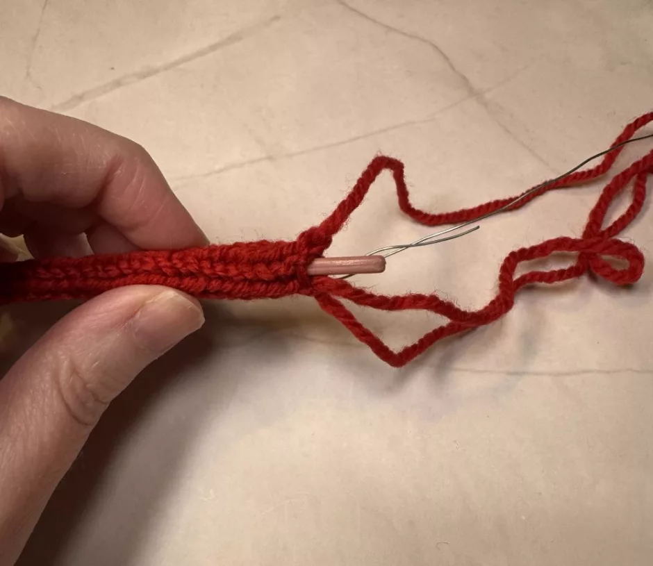 Before we can make an ornament we need our knit cord. If you’re making this a stash busting project you can knit until you’re almost out of yarn, or just go on vibes.