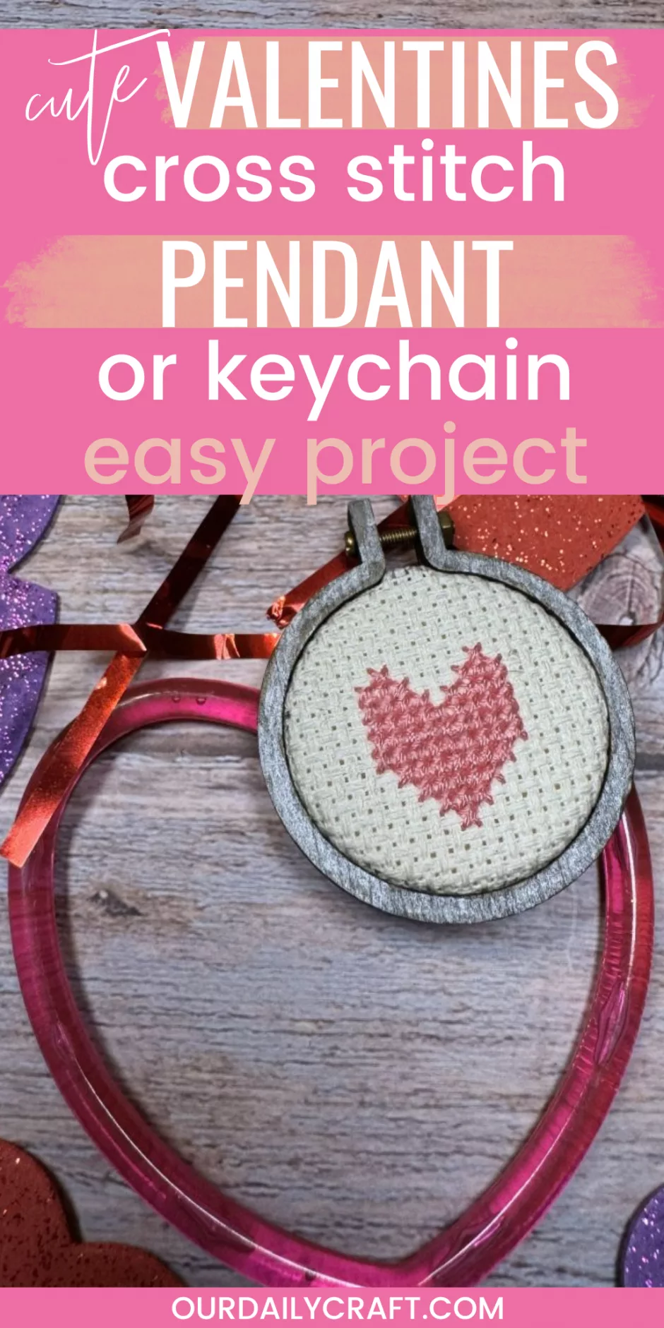 This cross stitch heart pendant is super simple to make for a Valentine’s Day gift or to wear yourself. Or make it into a keychain, zipper charm, or anything else you want!