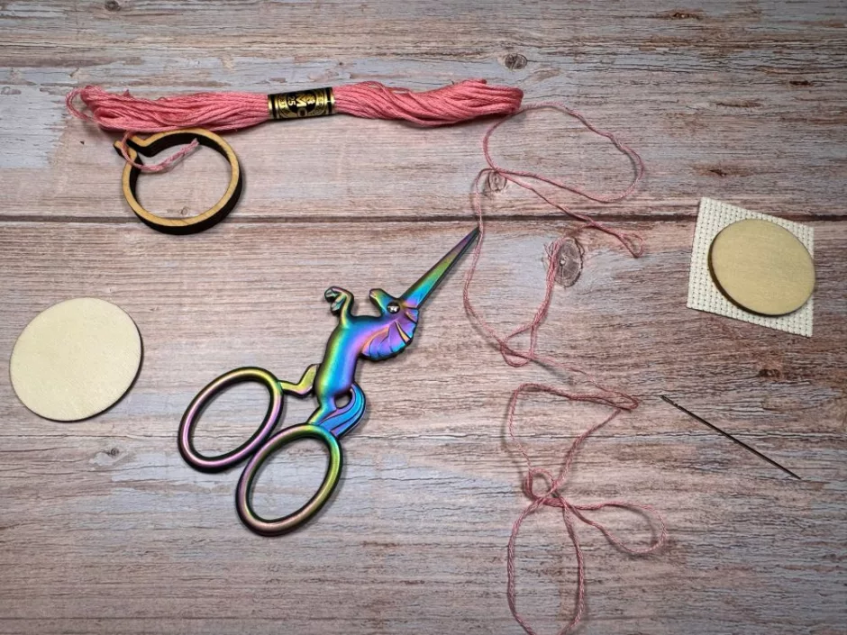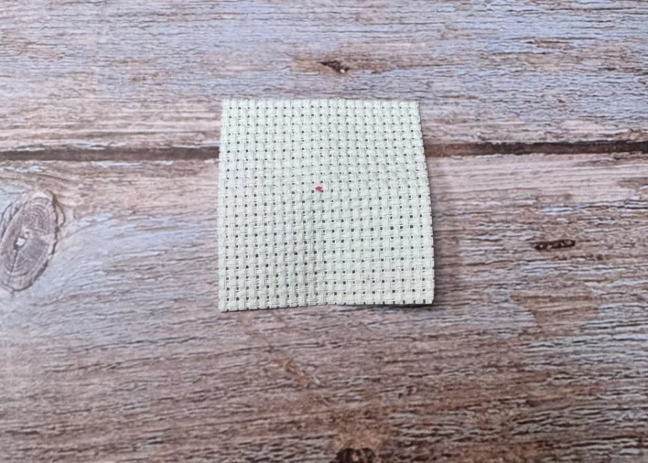 Some little scissors will be handy for cutting your thread and your piece of cross stitch fabric. I used a scrap of 14 count. I also used a little bit of Fray Check (you can use clear glue if you don’t have Fray Check handy) on the edges of my fabric.