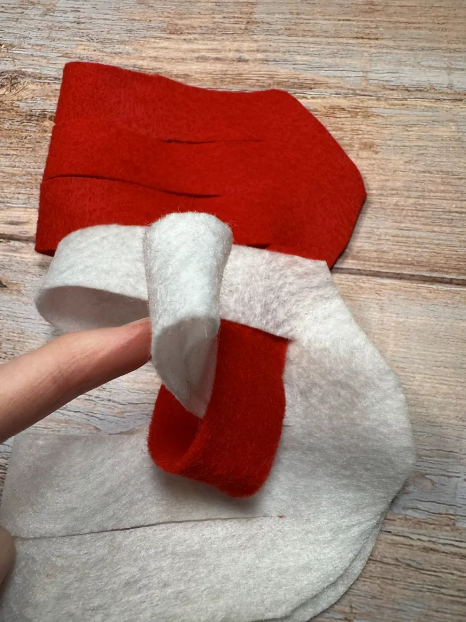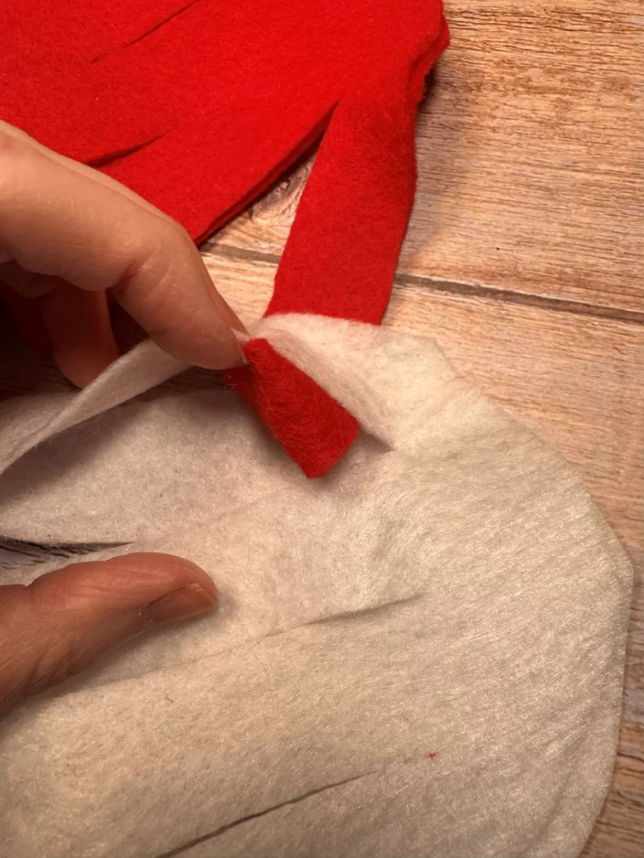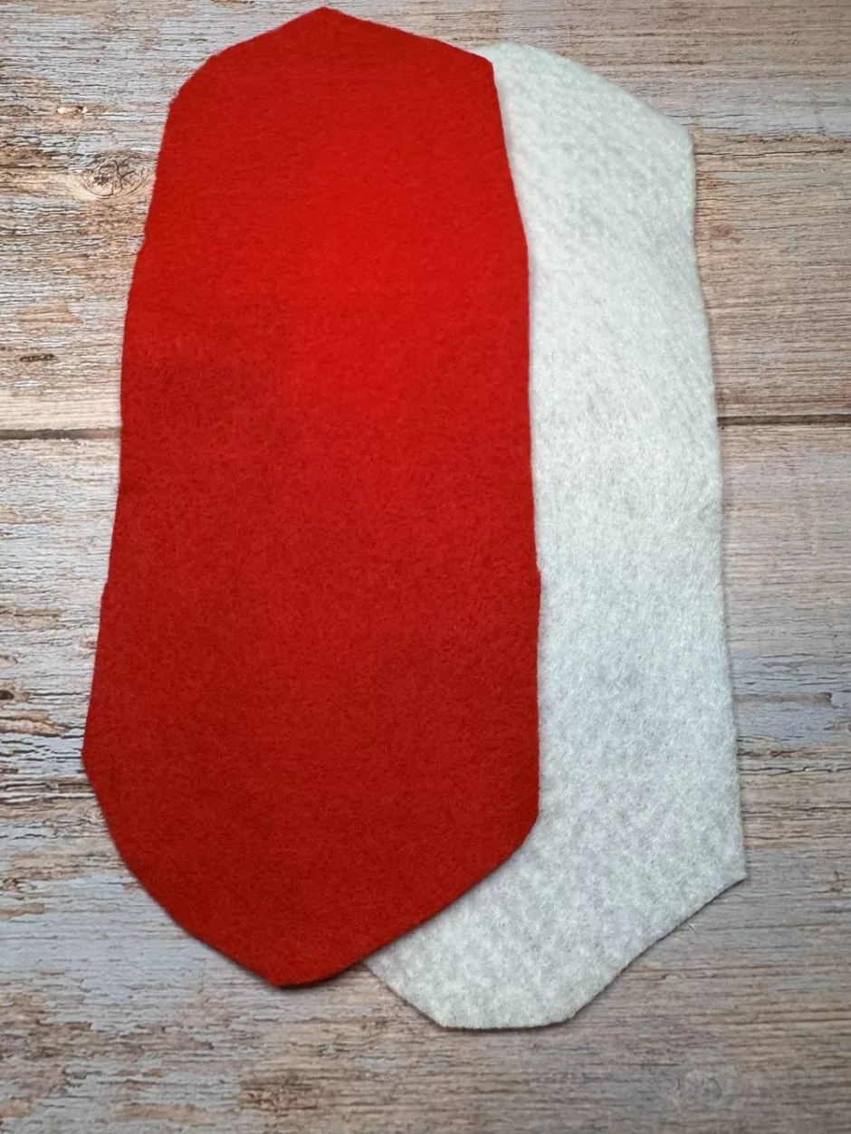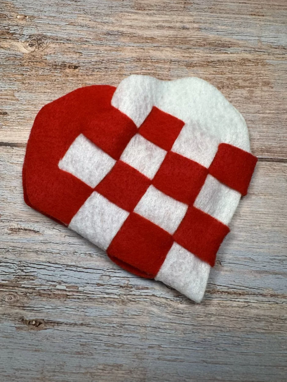 You’ll need two pieces of paper or felt to make a heart. It’s helpful if they are different colors because it’s easier to see what you are doing and the checkerboard effect is more pronounced. Here I’m using regular red and white felt.
